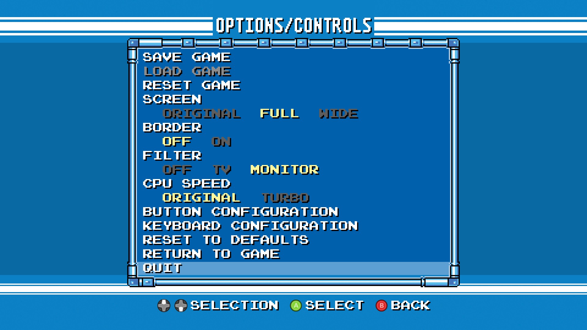 다만, 화면 필터 중 'TV'는 CRT composite 효과를 매우 잘 모의하지만 다소 거슬릴 정도의 화면 떨림이 수반되었다.