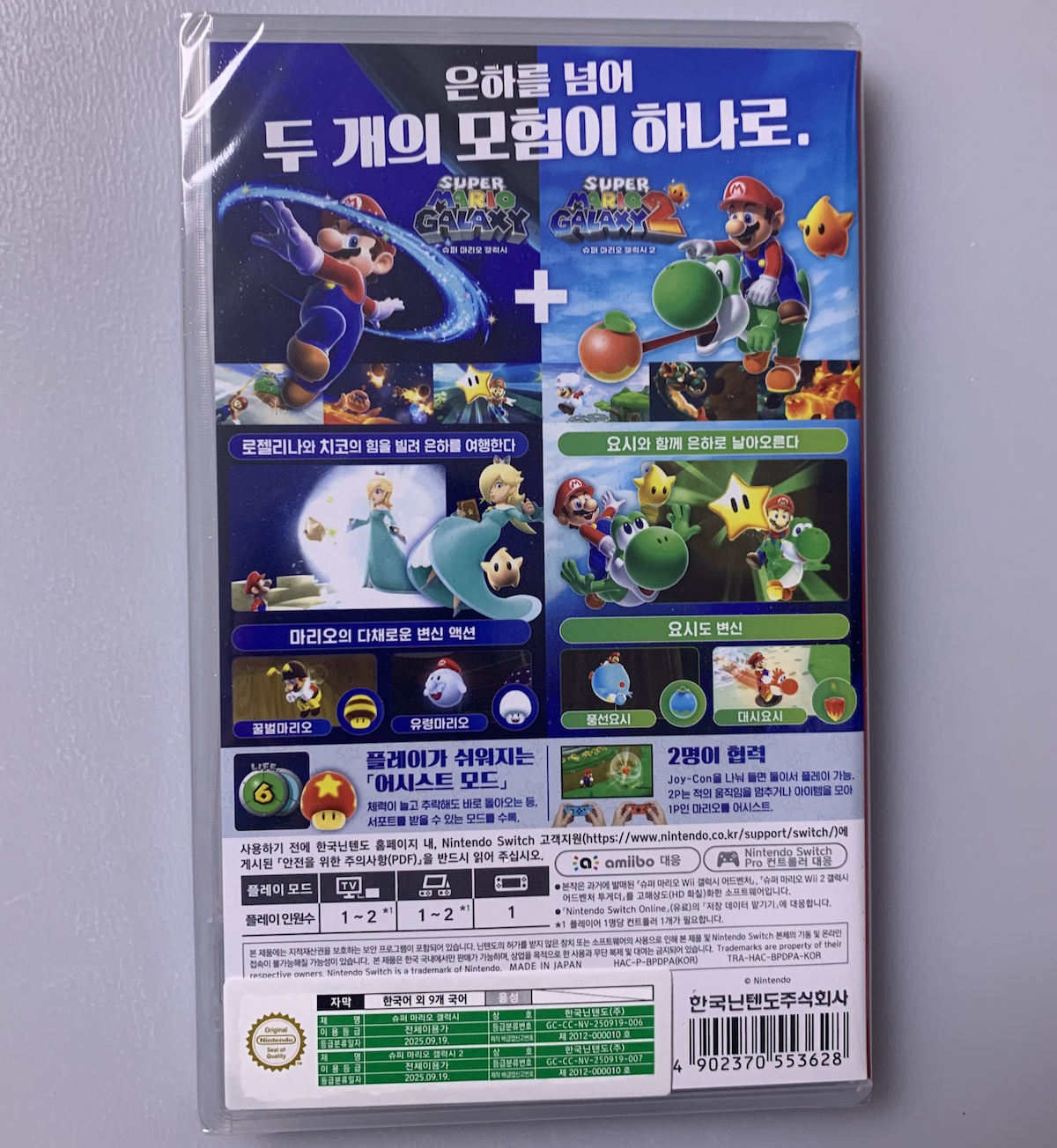 예약구매를 했었던 닌텐도 스위치용 '슈퍼 마리오 갤럭시 (Super Mario Galaxy) 1 + 2 합본'을 오늘 배송받았다.