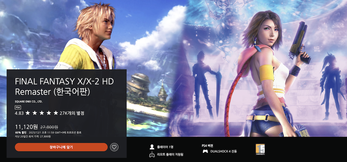 나름 유명하다고 들었지만 과거 PS2 시절에 플레이 해 보지 않았기에, PS4 플랫폼으로 리마스터된 버전을 이번에 구매했다. 정가는 조금 비싸다는 느낌이 있어 할인 판매를 기다렸는데, 마침 최근 SQARE ENIX의 할인 행사가 있었다.