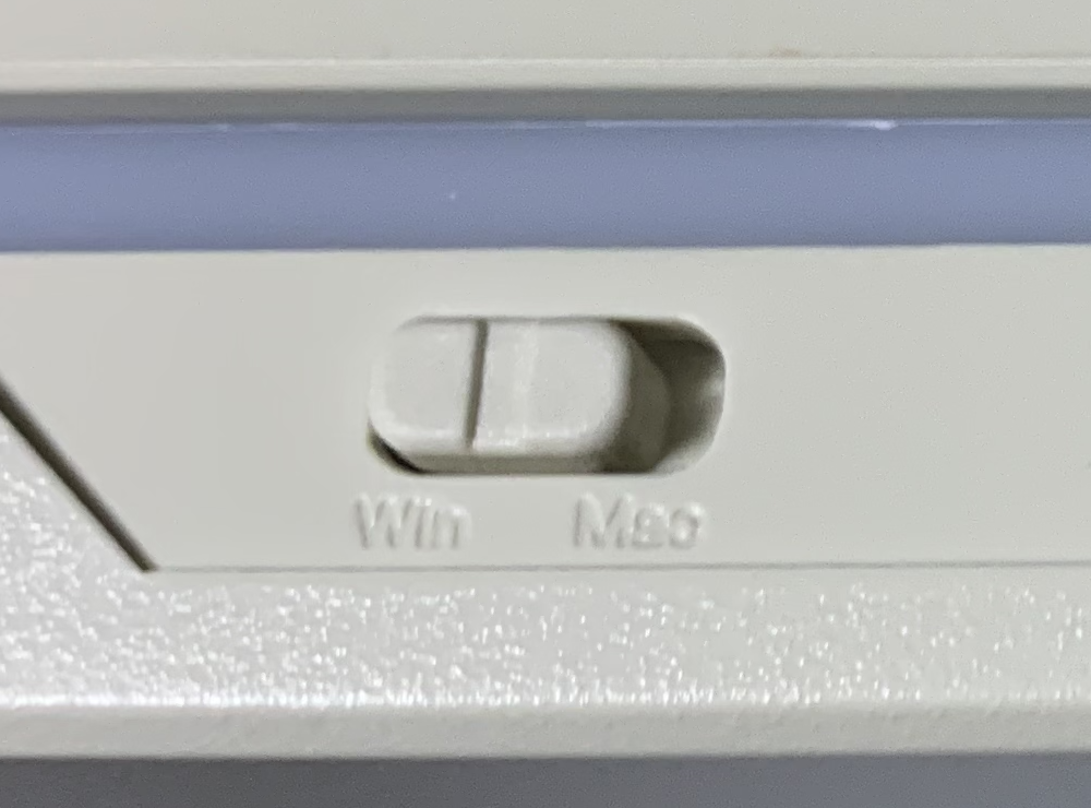 뒷면 스위치를 통해 Windows 모드나 Mac 모드 중 하나를 선택할 수 있다. Mac 모드에서 Win 키는 Command 키가 아닌 Option 키가 되고 Alt 키는 Option이 아닌 Command키가 된다.