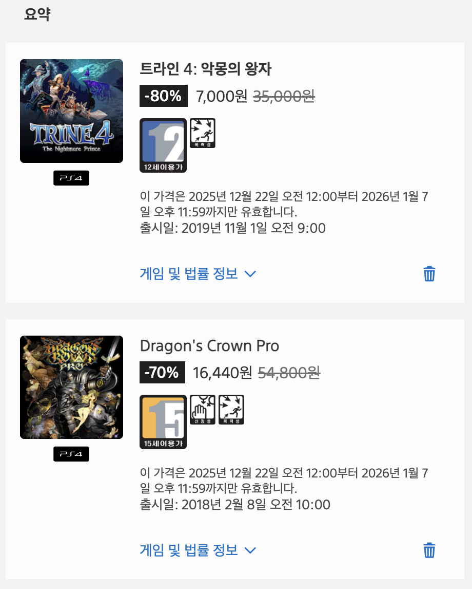 PS 스토어 할인 판매 기간에 게임 두 개를 구매했다.