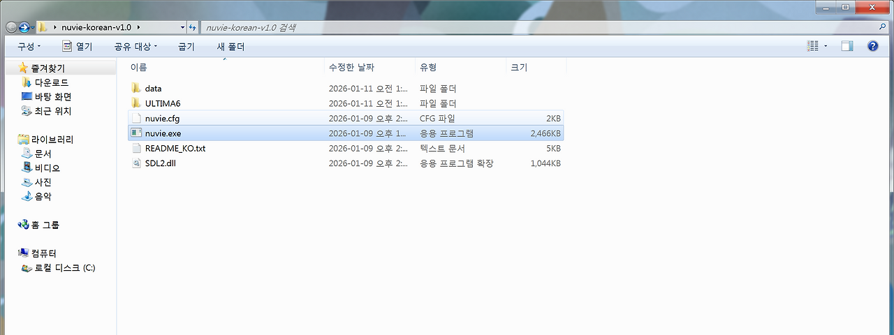 패치 파일 안에 nuvie.exe 파일을 클릭해서 실행했다.