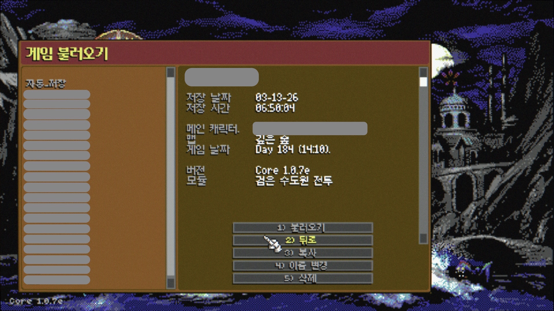 게임을 세이브할 때 이름을 입력하게 되어 있어서 여느 RPG들처럼 세이브를 많이 생성할 수 있을 줄 알았다. 하지만 화면에 보이는 이름의 개수만큼('자동_저장'을 포함하여 20개)만 세이브를 할 수 있다는 것을 뒤늦게 알았다. 게임의 분기가 많아 보이지도 않고 다시 과거 지점으로 돌아가고 싶은 경우도 많지는 않았지만, 혹시나 하고 중간에 세이브를 많이 하는 스타일이라 다소 불편했다. 어차피 각 세이브를 별도의 파일로 만들어서 PC 스토리지의 디렉토리에 저장할 것이므로 개수의 제한이 없게 했어도 되지 않았을까 하는 생각이 들었다.